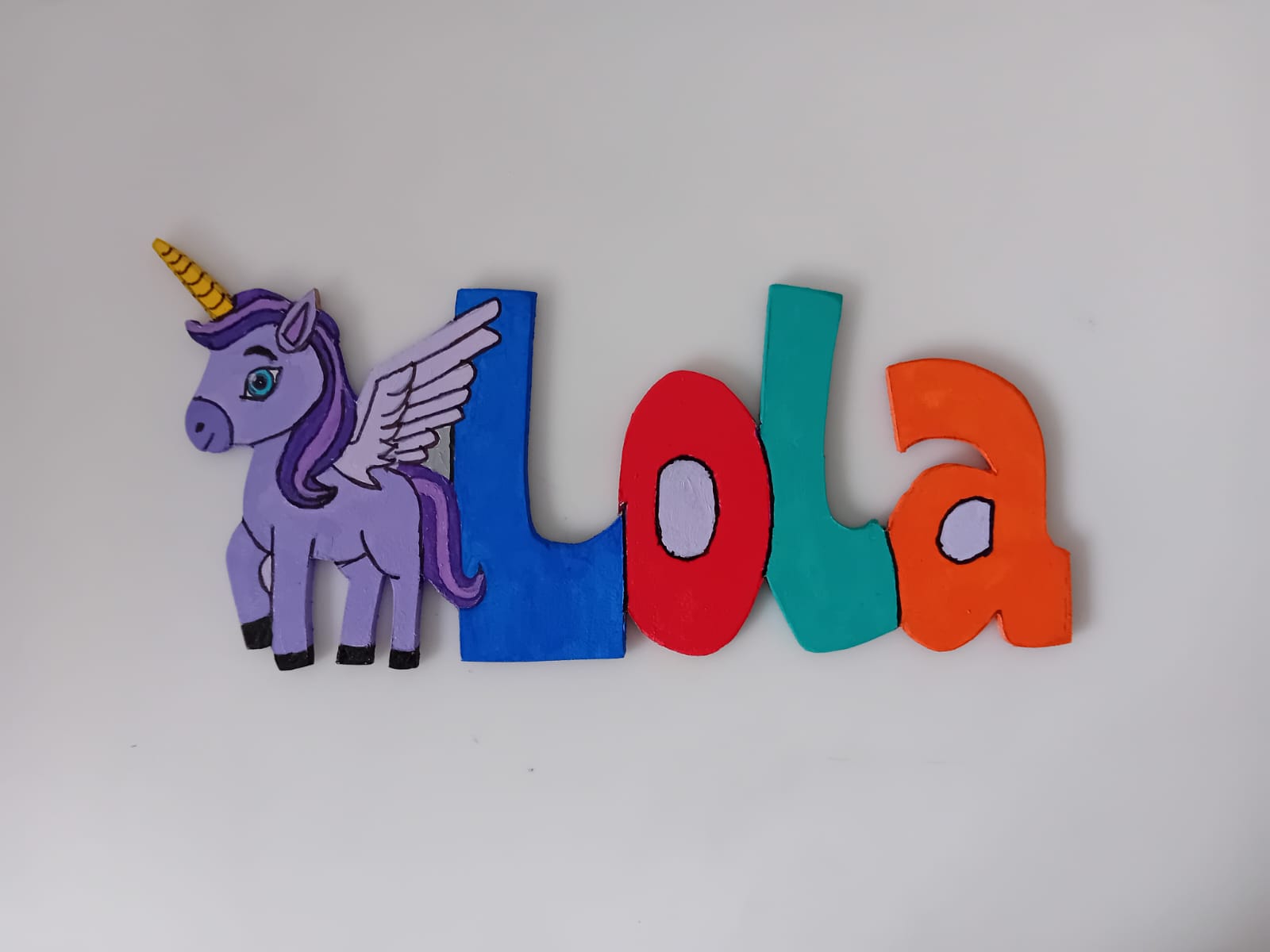 Silueta con el nombre de vuestro hijo o nieto personalizada en MDF pintado artesanalmente con pinturas acrÃlicas